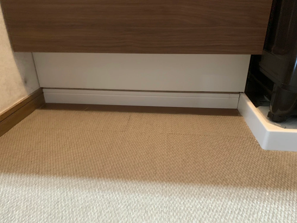 洗面所が狭く、75㎝の洗面台を置く場合、巾木と洗濯機パンが邪魔し、73㎝ほどしかスペースがない状態でした。今回、大工が6㎝の台を作ってくれたおかげで、それらをかわし、75㎝の洗面台を置くことができました。