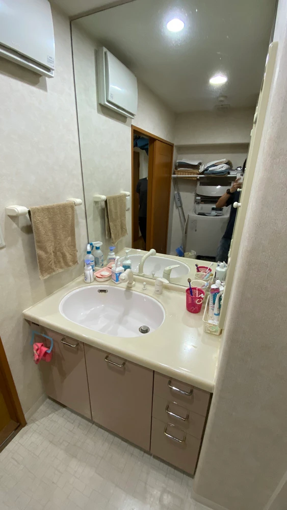 | 主なリフォーム内容 | ・リクシルの洗面台へのリフォーム ・埋込収納を交換 ・クロス・クッションフロアも張替え ・洗濯機パンも交換 |