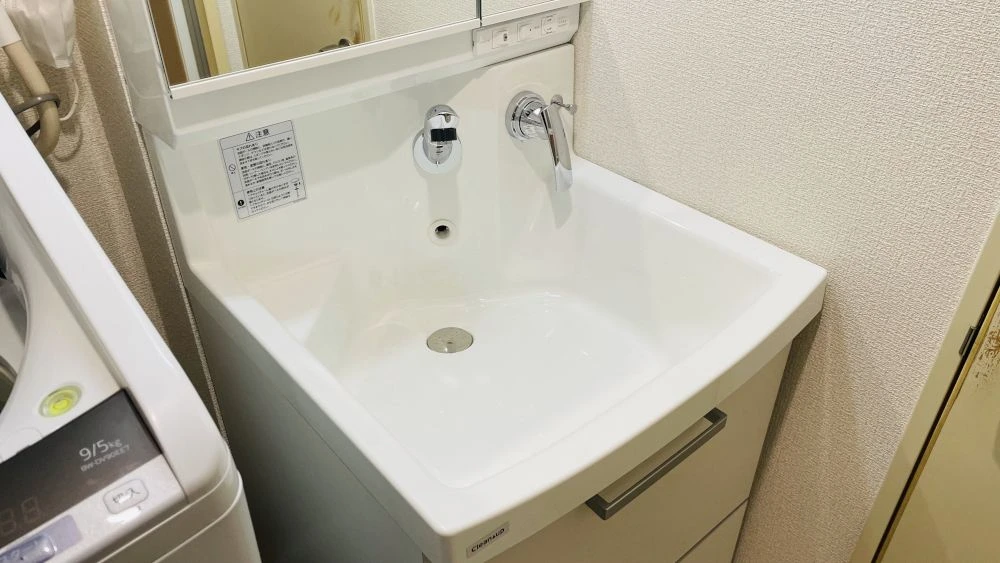 古い洗面台をクリナップ「ファンシオ」に交換した事例です。