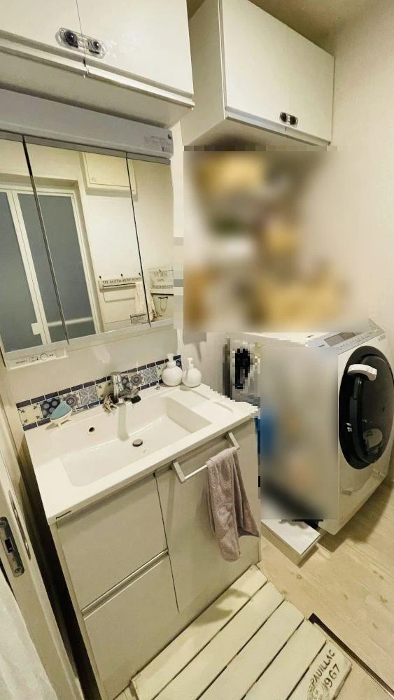 一回り小さな洗濯パンに交換することで、一回り大きい洗面台を設置
