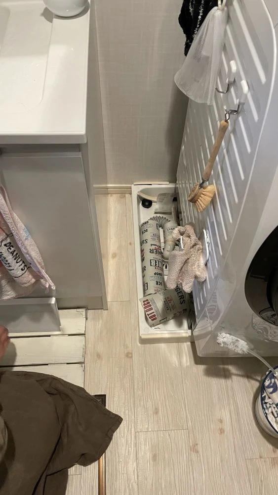 ・幅90㎝の洗面台を置くために、一回り小さな洗濯機パンに交換
