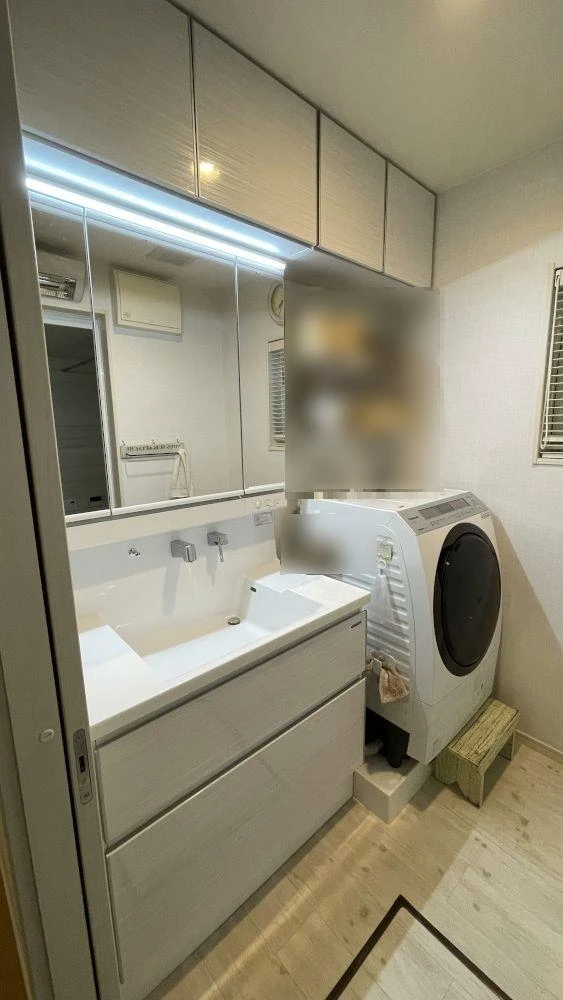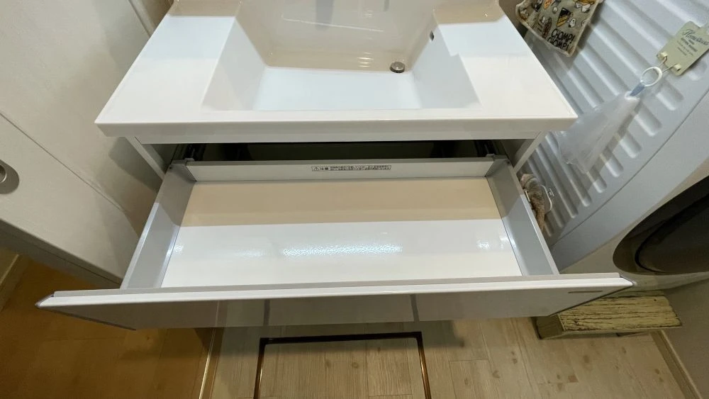 洗濯機と洗面台の間にあった無駄なすき間がなくなり、洗面台を幅70cmから90cmにサイズアップできました。