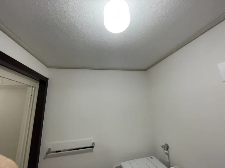 変色とはがれが進行していたクロスとクッションフロアを張り替えただけでも、洗面所は見違えるように明るくきれいになりました。