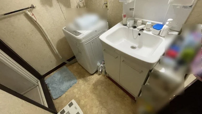 | 主なリフォーム内容 | ・洗濯機パン交換 ・洗濯機パン下床上げ ・洗濯水栓交換(緊急ストッパー付) ・洗面所クロス張り替え ・洗面所クッションフロア張り替え |