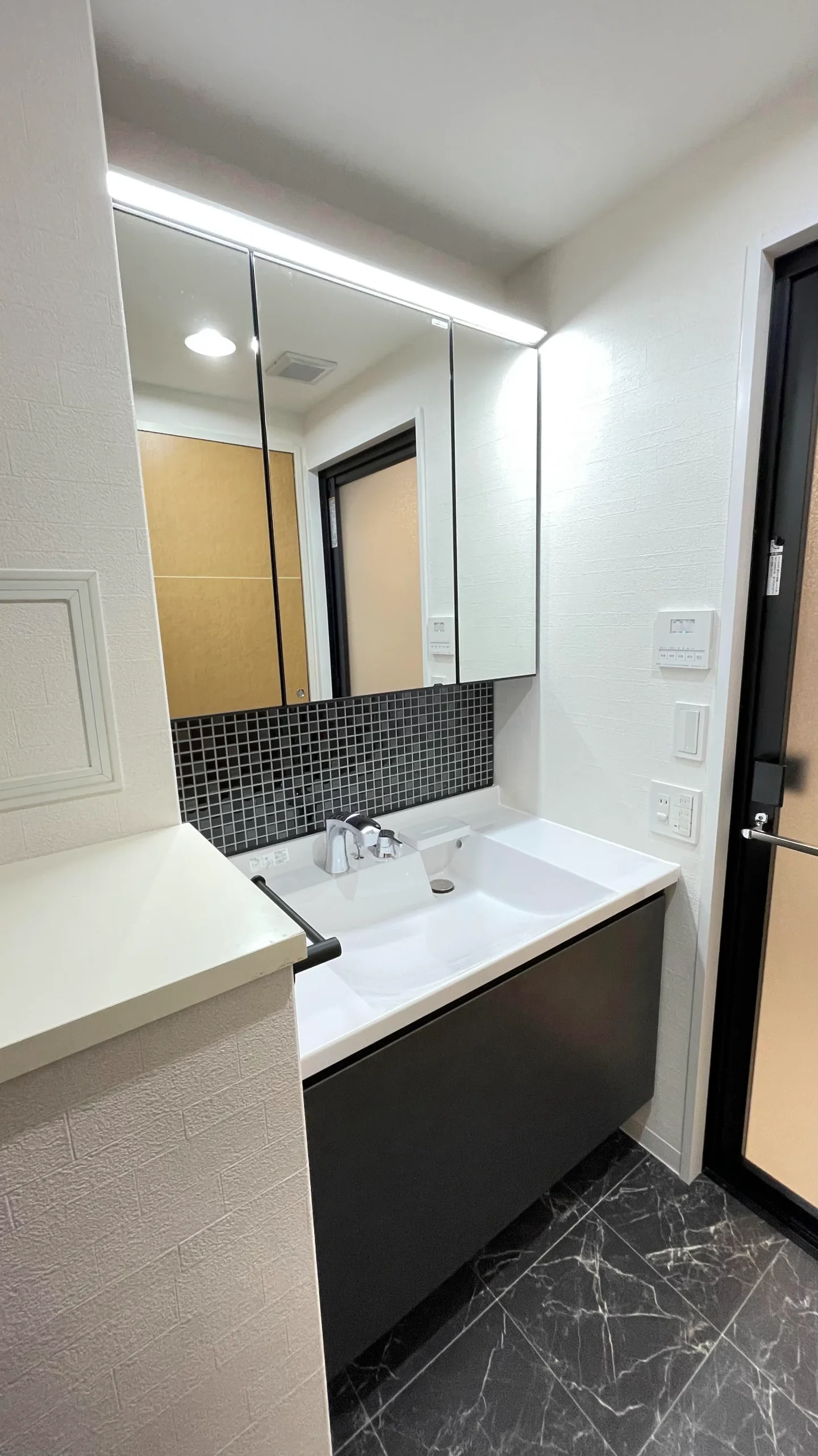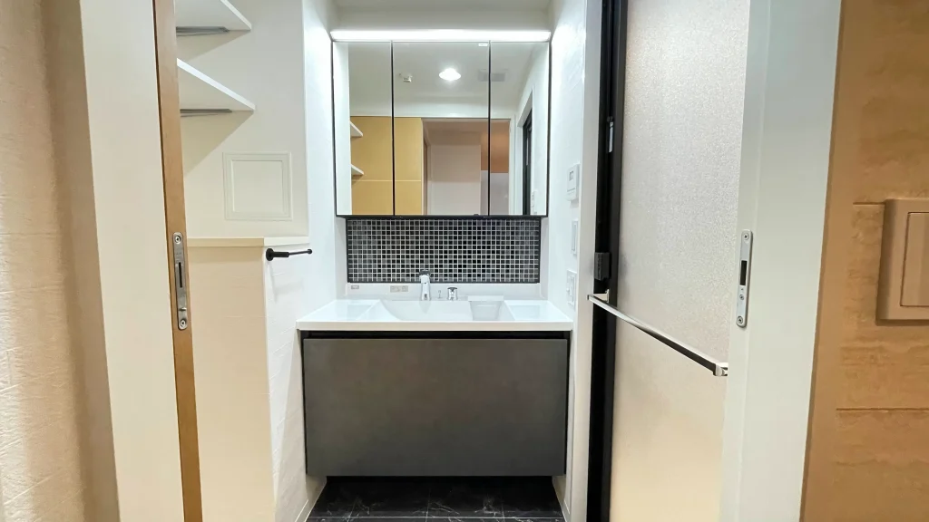 水栓はタッチレス水栓、また照明もスイッチに触れずにオンオフできるタッチレス照明なので非常に衛生的です。