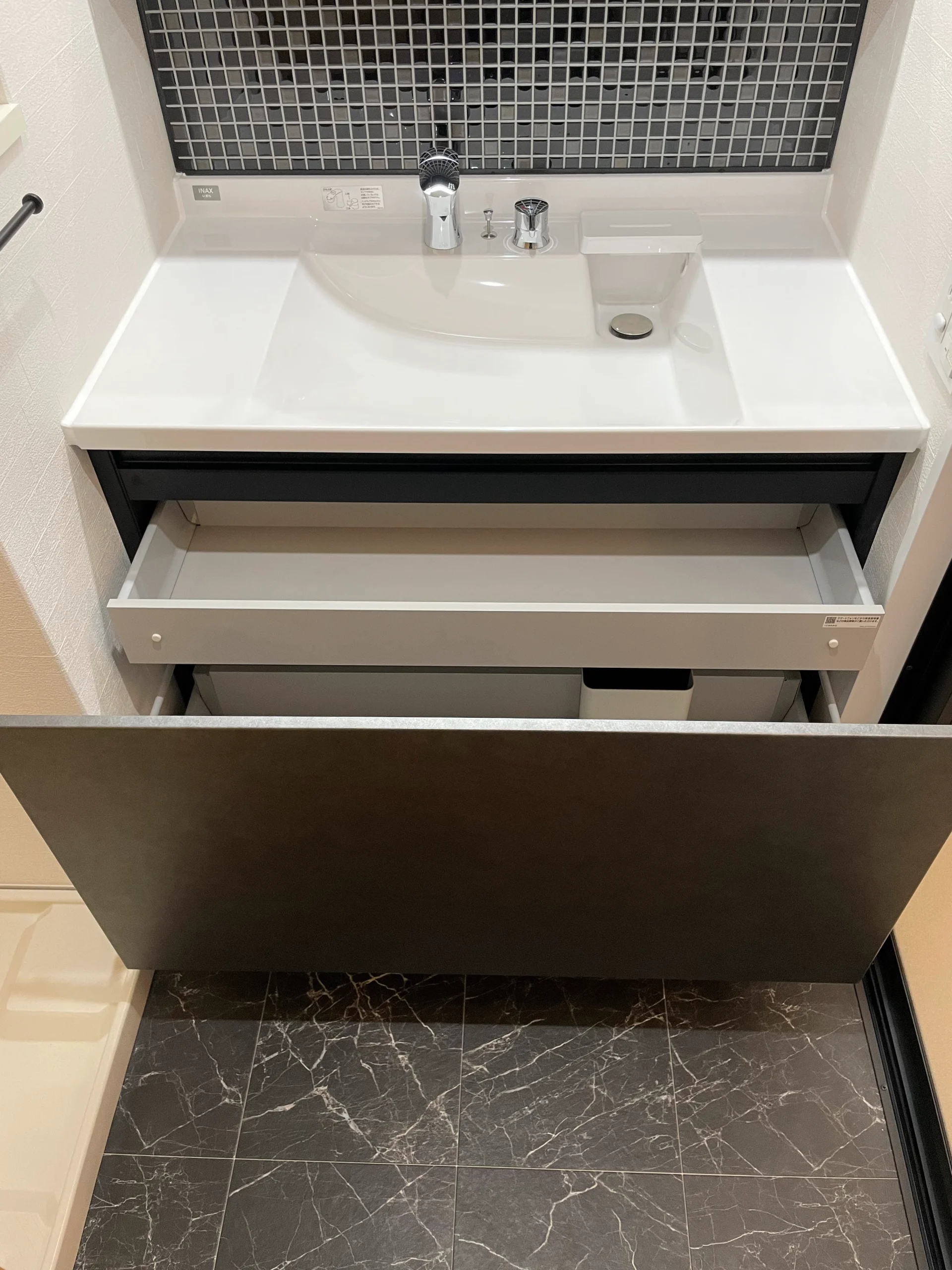 洗面台下収納は2段の引き出し式に。収納力に長けています。