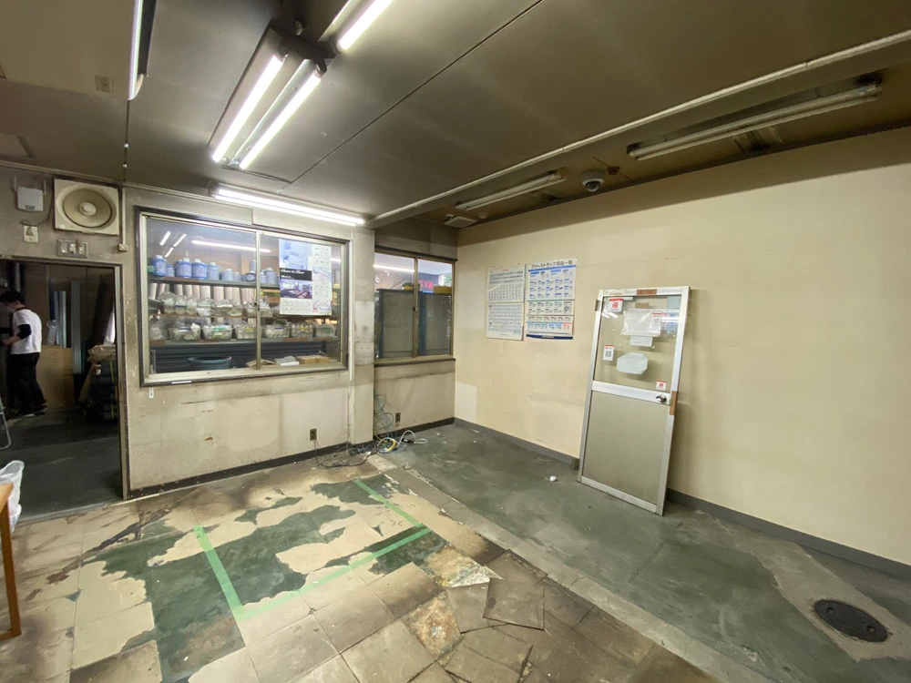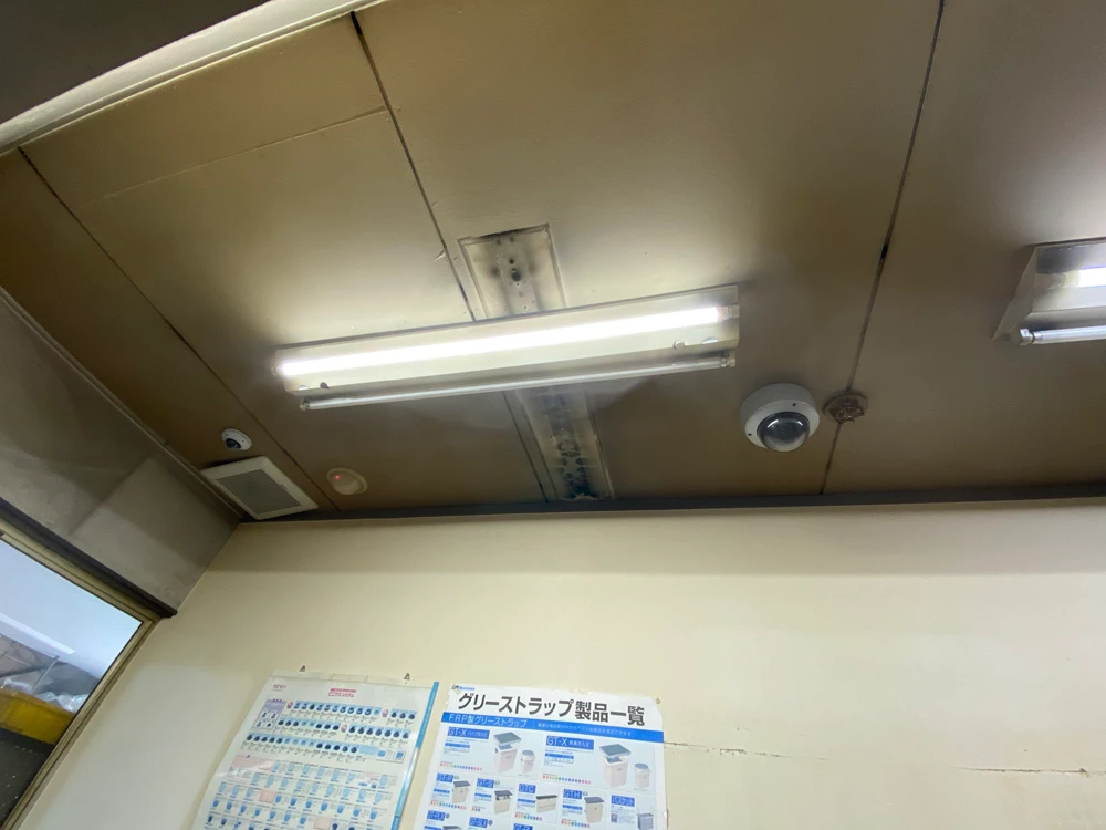 経年劣化により、壁・天井は真っ黒で、エアコンはかび臭く、照明の影響もあってか、暗い雰囲気でした。