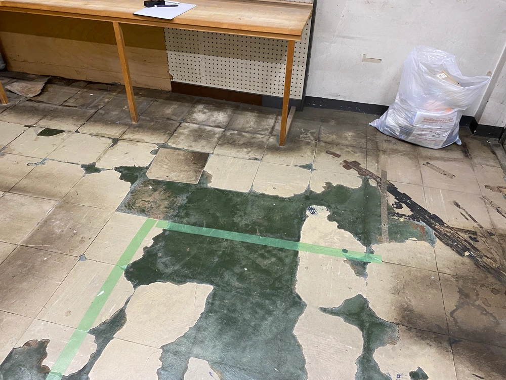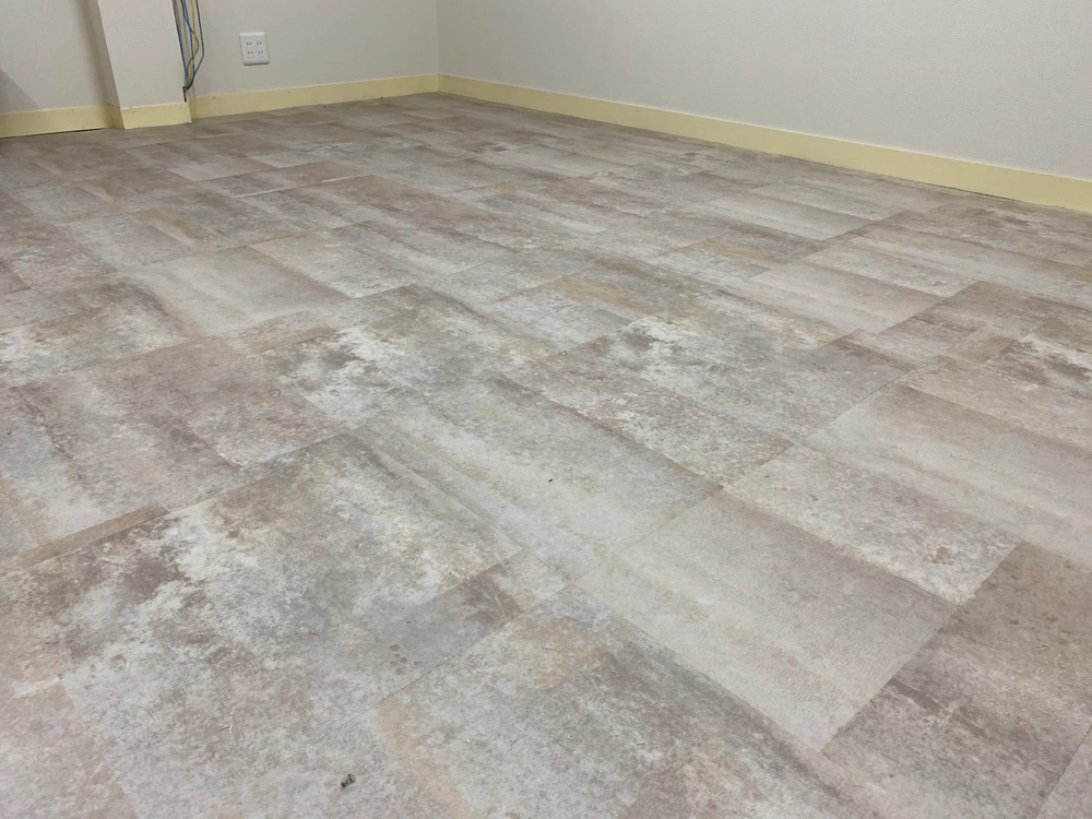 天井や壁をできる限り解体して、下地から作り替えました。そのときに天井は凹凸が激しかったのですが、面一(つらいち)にしてスカッとさせました。床はフロアタイルで上張り。段差がありましたが、何とかパテで段差をなだらかにして浮かないように張れました。