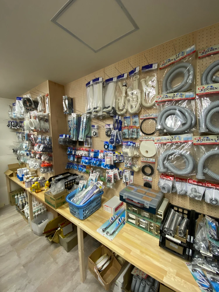 壁は一面は有孔ボードと呼ばれる穴の開いたボードでフックをかけて商品をぶら下げられるようにしました。もう一面は棚板を新しくして付け直しました。