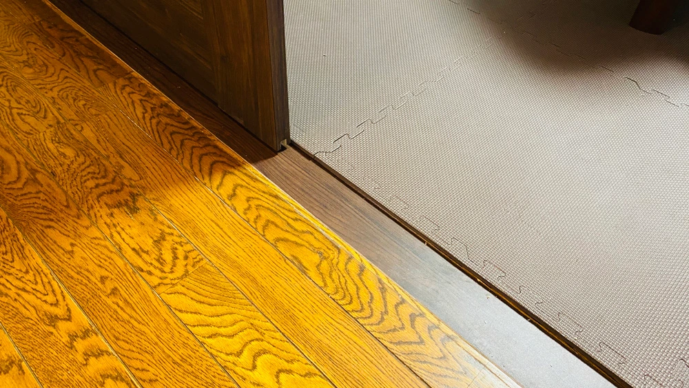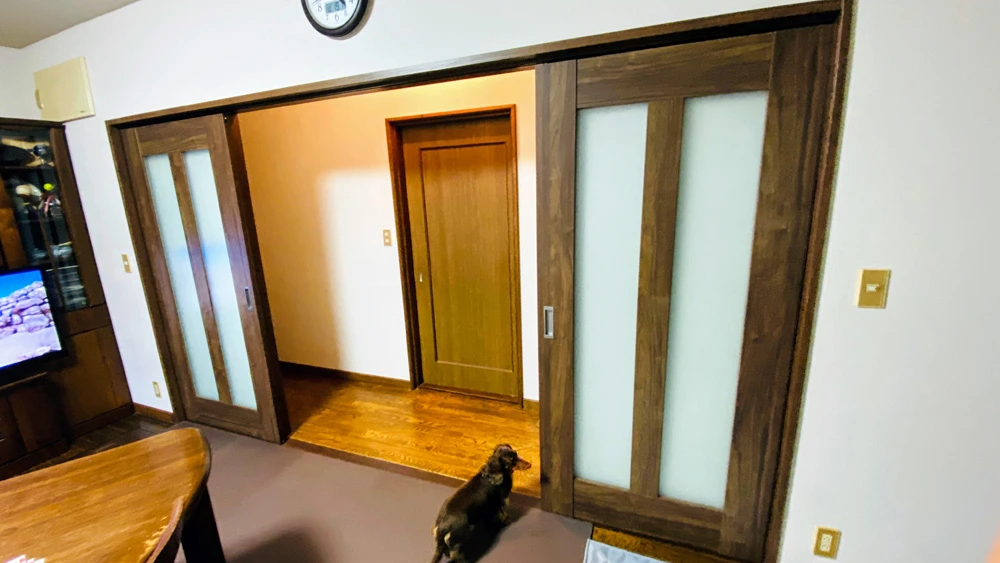 もともとは敷居があり、立付けが悪く、閉まりがが悪い状態になっていました。今回、敷居は撤去し、廊下とリビングの間で段差をなくし、完全なバリアフリーにしました。
