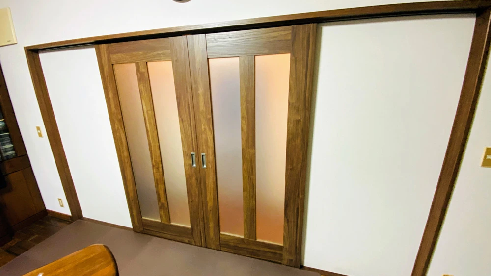 立て付けの悪くなっていた敷居部分をなくし、バリアフリー化しました。建具は面積が広く、色や質感で大きく部屋の雰囲気が変わる部分です。パナソニックのベリティスを選び、一気に部屋の雰囲気が変わりました。