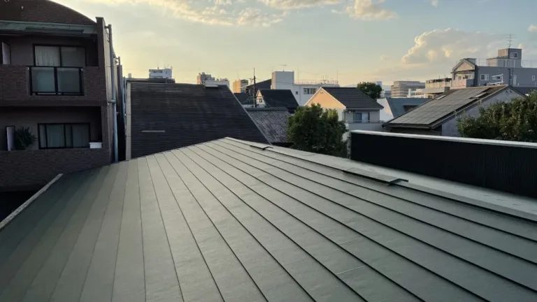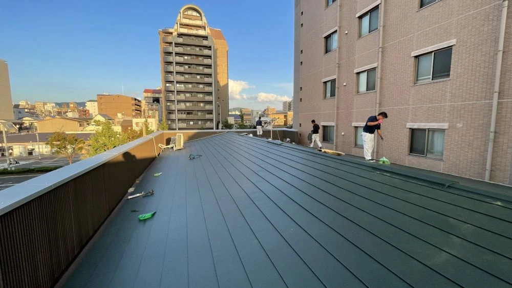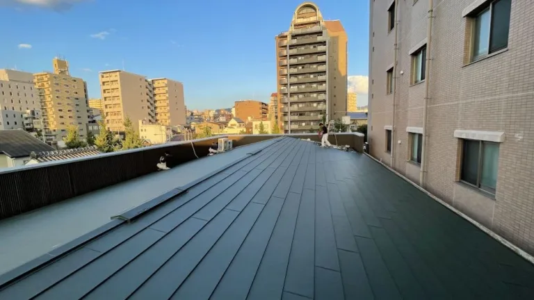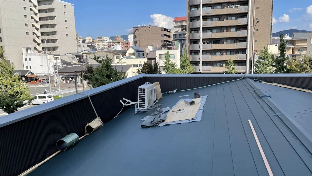 パラペット(手すり)を覆っているトタンの波板や笠木もサビやゆがみがあったので交換し、雨漏りとは無縁の屋根が完成しました。