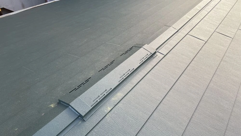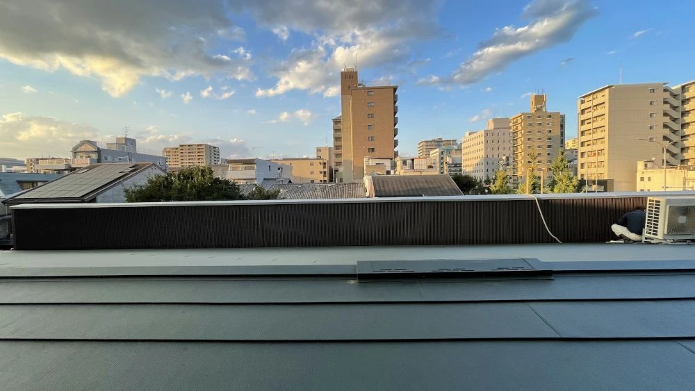 屋根の葺き替えに使用した鋼板は「ガルテクト」。耐久性が高く、20年は穴あきなどの心配がない屋根材です。断熱材が裏張りされているため、防熱・防寒性にも優れています。