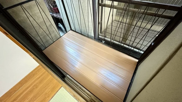 今回使用した部材は、エクステリア建材で定評のある三協立山アルミ社製の塩化ビニルデッキです。十分な強度のあるバルコニーを、税別7万円以下で実現しました。
