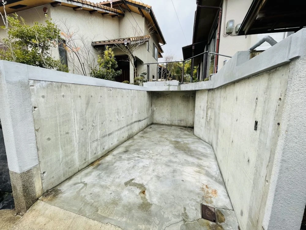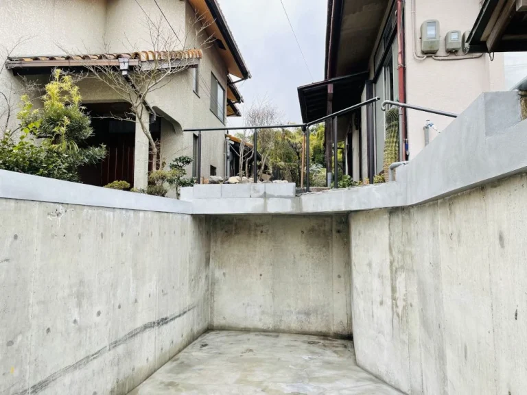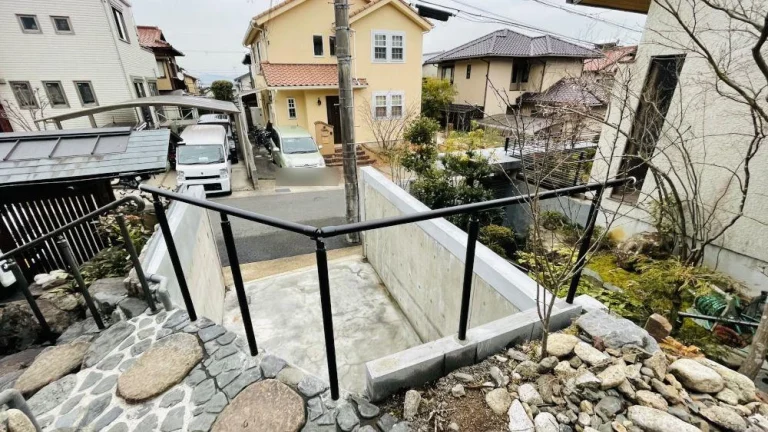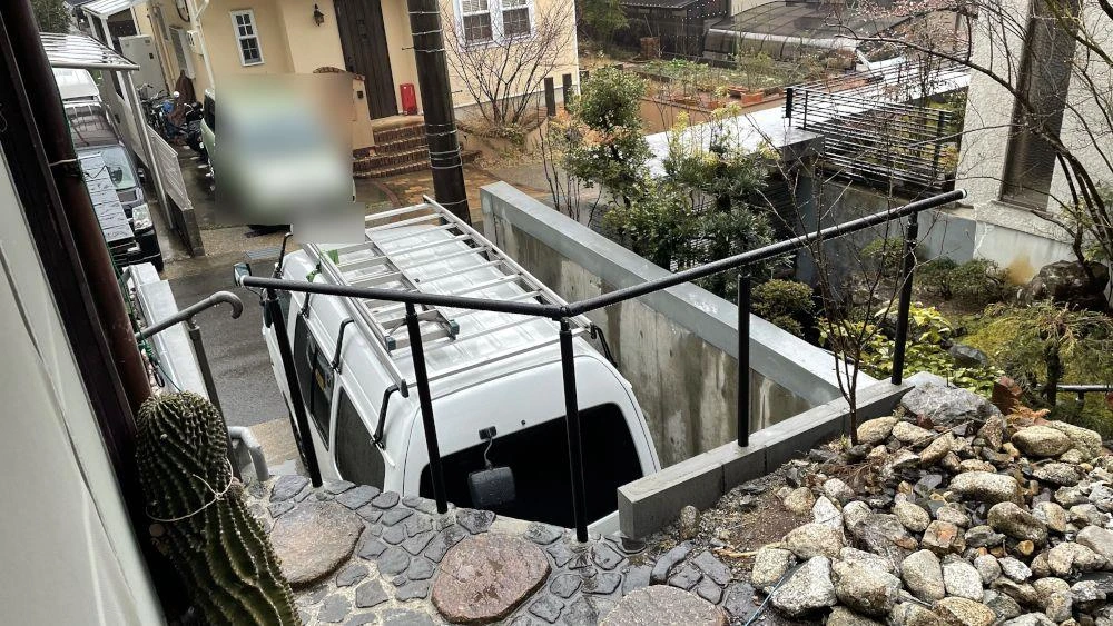 坂が多い地域では、家屋や庭の下にガレージを設置することがよくあります。こちらのお客様も、ガレージ上スペースは庭として活用されていましたが、車高の高い車を入れられるようにガレージの天井を撤去するリフォームを行いました。