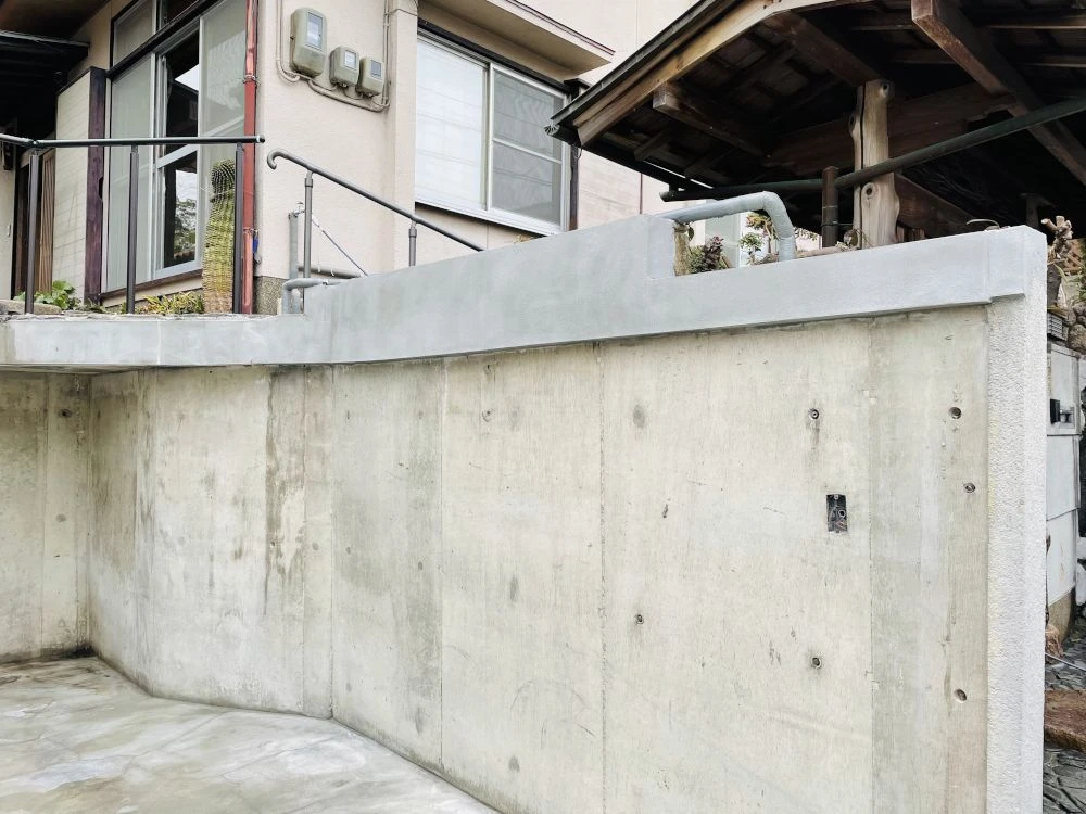ガレージ天井を撤去した後、壁の上部はセメントの2度塗りで補修しました。