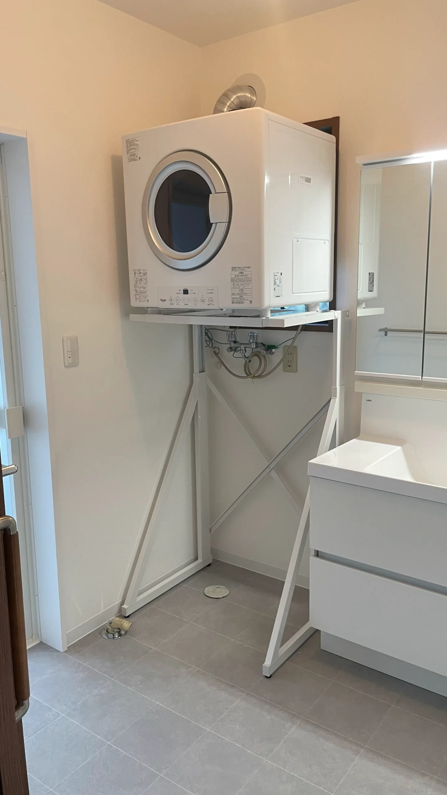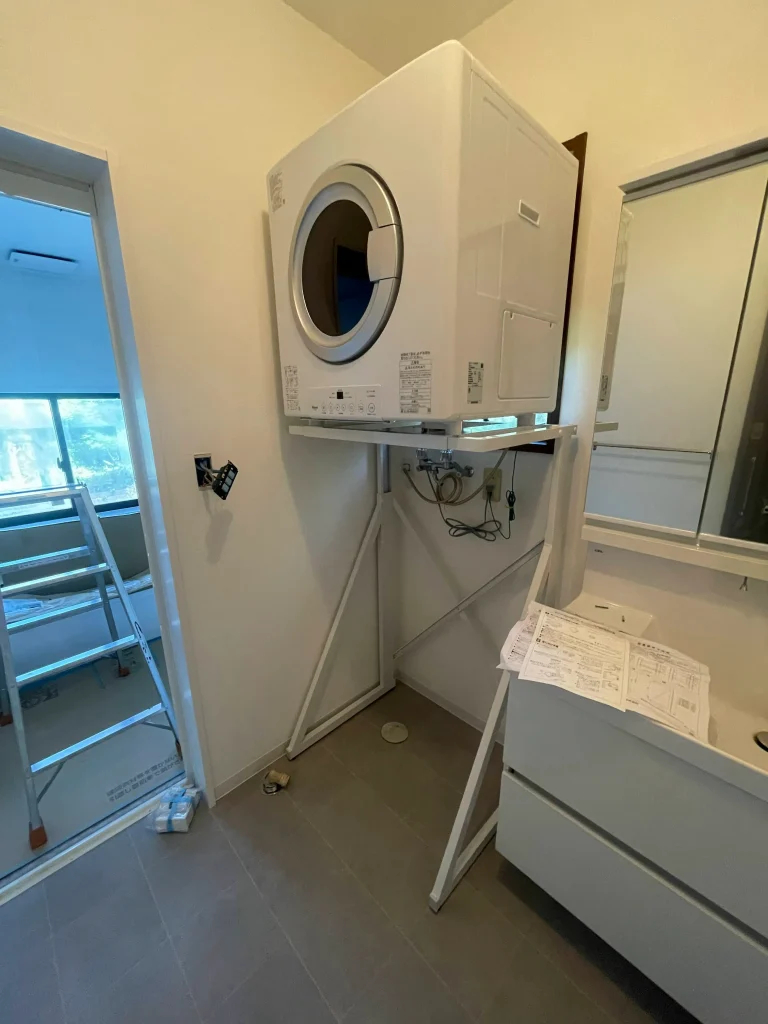 ガス式衣類乾燥機「乾太くん」を洗面所に設置した事例です。