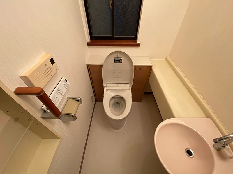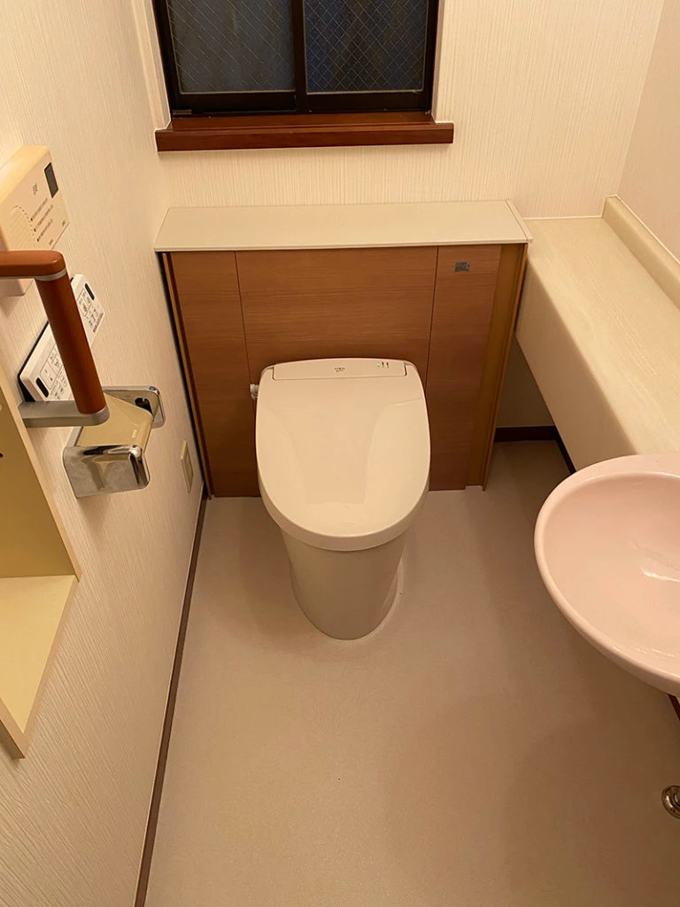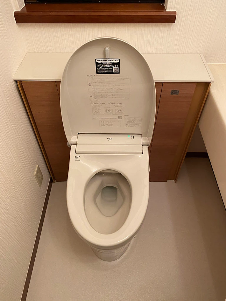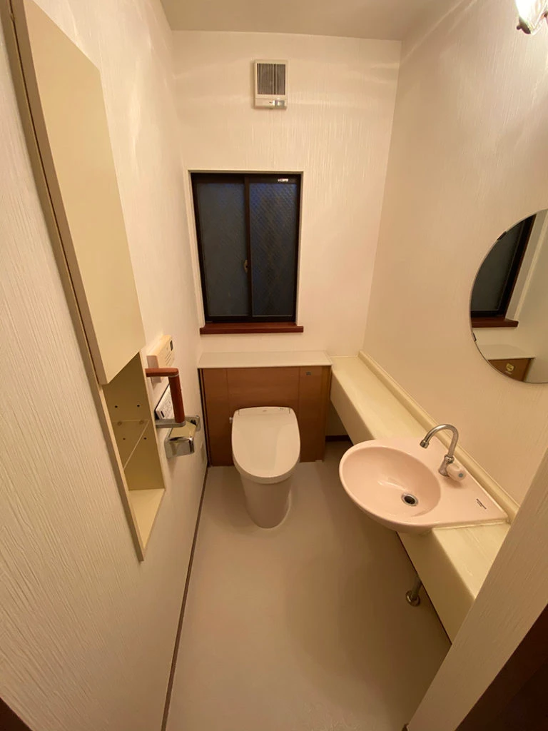 | 主なリフォーム内容 | ・収納棚付きのリクシル「リフォレ」へのトイレ交換 ・クロスクッションフロアも張替え |