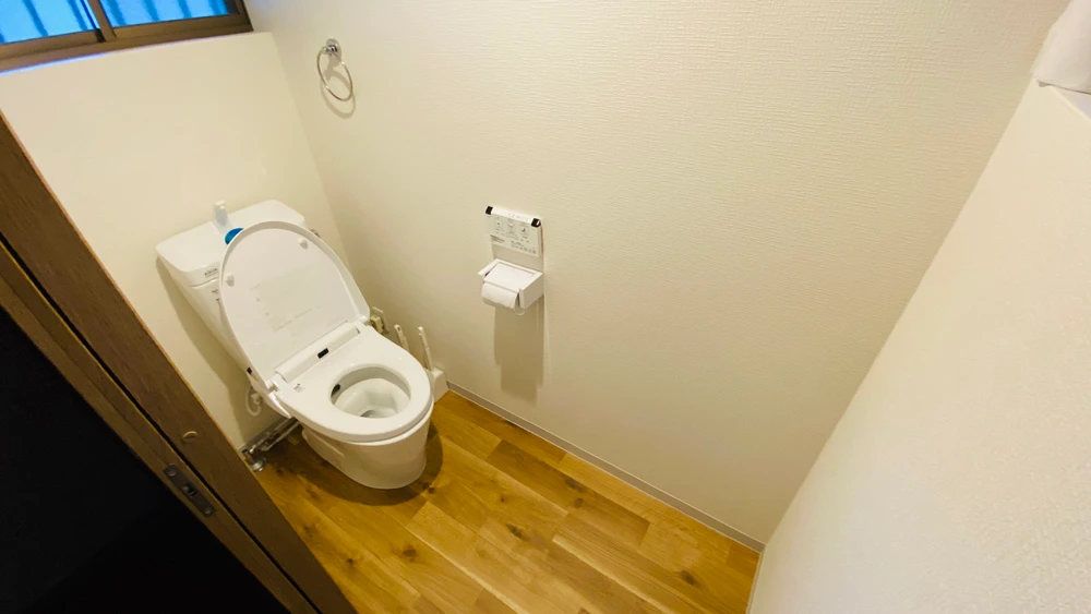 タイルの壁や床、天井は全て解体し、イチから作り直しました。おかげで、スッキリとした今風な洋式トイレにすることができました。