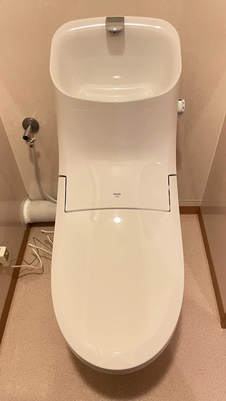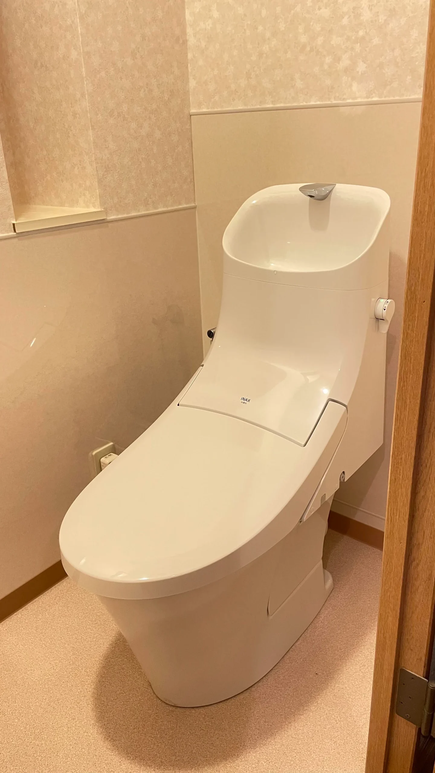 リクシルの人気商品「アメージュZA」への交換事例です。シンプルな形状でお手入れしやすく、トイレが広く感じます。