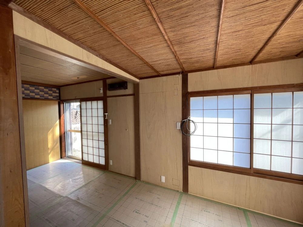 ・和室2室の土壁にベニヤ板捨て張り・クロス張り