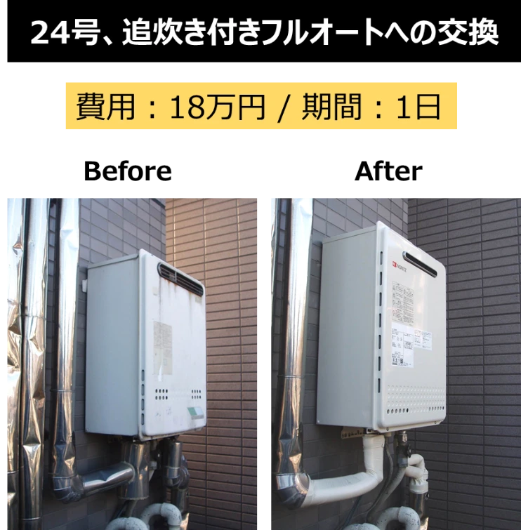 3-1.24号、追炊き付きフルオートの給湯器への交換
