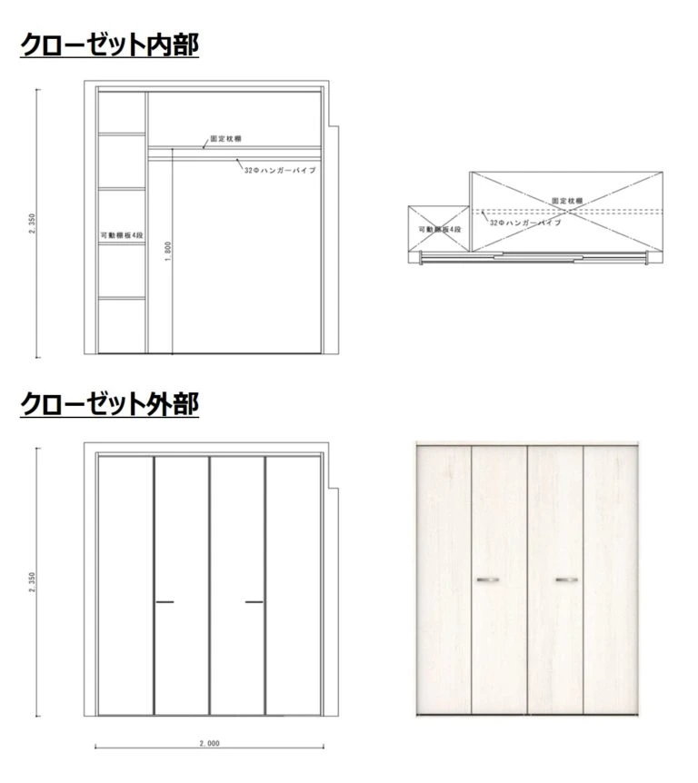 ご覧のように、クローゼットの内部でハンガーパイプを付けない場合、その分だけ費用を抑えることができます。